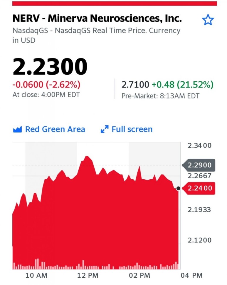 Minerva Neurosciences, 2021 년 1/4 분기 재무 결과 및 비즈니스 업데이트 발표