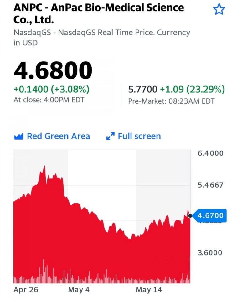 AnPac Bio는 2021 년 3 월 31 일 현재 142 개의 특허를 발행 한 조기 암 검진 및 발견에 중점을 둔 생명 공학 회사입니다. 중국에 2 개의 인증 된 임상 실험실과 1 개의 CLIA 및 CAP 공인 임상 실험실과 1 개의 CLIA 등록 된 임상 실험실이 미국에 있습니다. , Anpac Bio는 CDA (Cancer Differentiation Analysis), 생화학, 면역학 및 유전체학 테스트를 포함한 일련의 암 선별 및 검출 테스트를 수행합니다. Frost & Sullivan에 따르면, AnPac Bio는 2020 년 12 월 31 일 현재 약 41,700 개의 임상 샘플을 기준으로 암 선별 및 검출을위한 임상 샘플 수 측면에서 차세대 조기 암 선별 및 검출 기술을 제공하는 기업 중 세계 3 위를 차지했습니다.