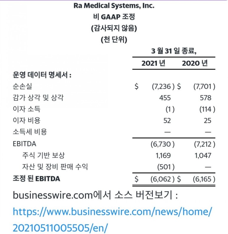 Ra Medical Systems, 2021 년 1 분기 재무 결과보고