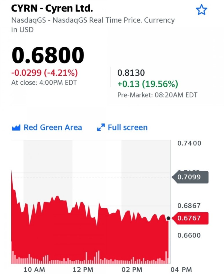 2 월 16 일 사이렌은 1,15 달러의 매입 가격으로 1,380 만 달러의 보통주 12,000,000 개의 등록 된 직접 오퍼를 마감한다고 발표했습니다. Cyren은이 오퍼링의 순수익을 운전 자본 및 일반 기업 목적으로 사용하려고합니다.