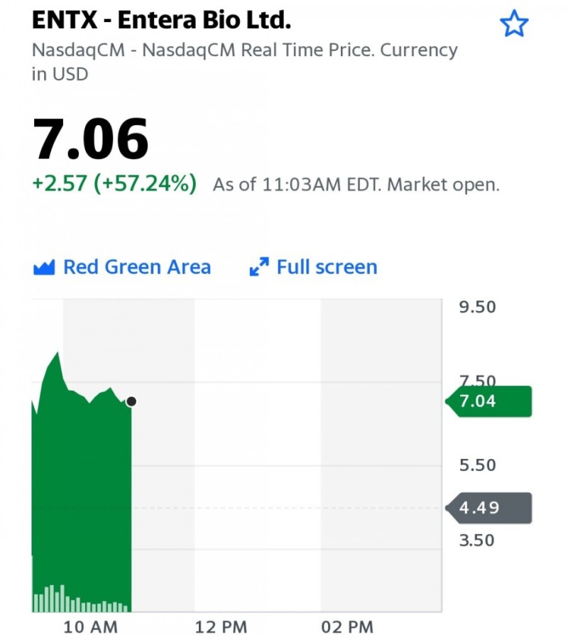 [미국 주식] Entera Bio Ltd (ENTX) 주가가 급등한 이유는?