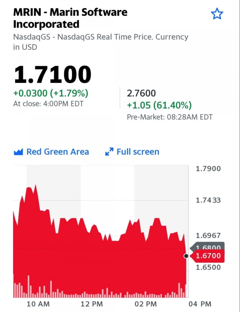 Marin Software 주식은 회사가 MarinOne 플랫폼에 대한 개선을 발표 한 후 시장 전 거래에서 $ 2.47로 40 % 이상 상승했습니다. Instacart는 미국과 캐나다에있는 거의 55,000 개 매장에서 식료품 및 기타 품목을 제공하는 온라인 식료품 플랫폼입니다.