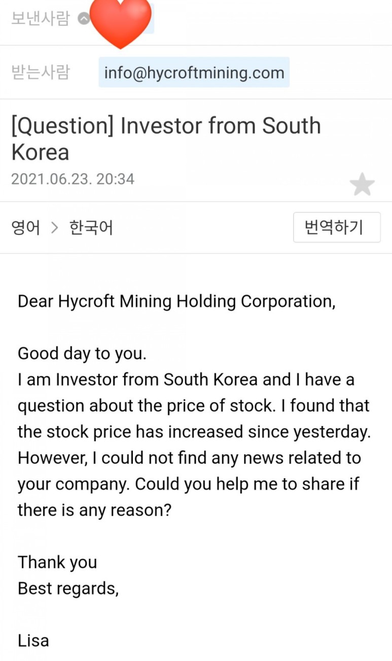 이사회 의장 인 David Kirsch는 다음과 같이 말했습니다 :“Mudrick은 계속해서 Hycroft의 주주이며 회사의 소유권을 높이려는 경영진의 이니셔티브를지지합니다.
