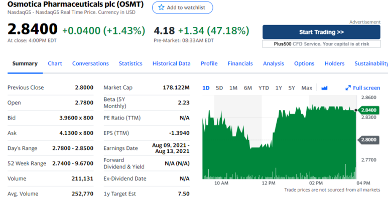 [미국 주식] Osmotica Pharmaceuticals plc (OSMT) 가 급등한 이유는?