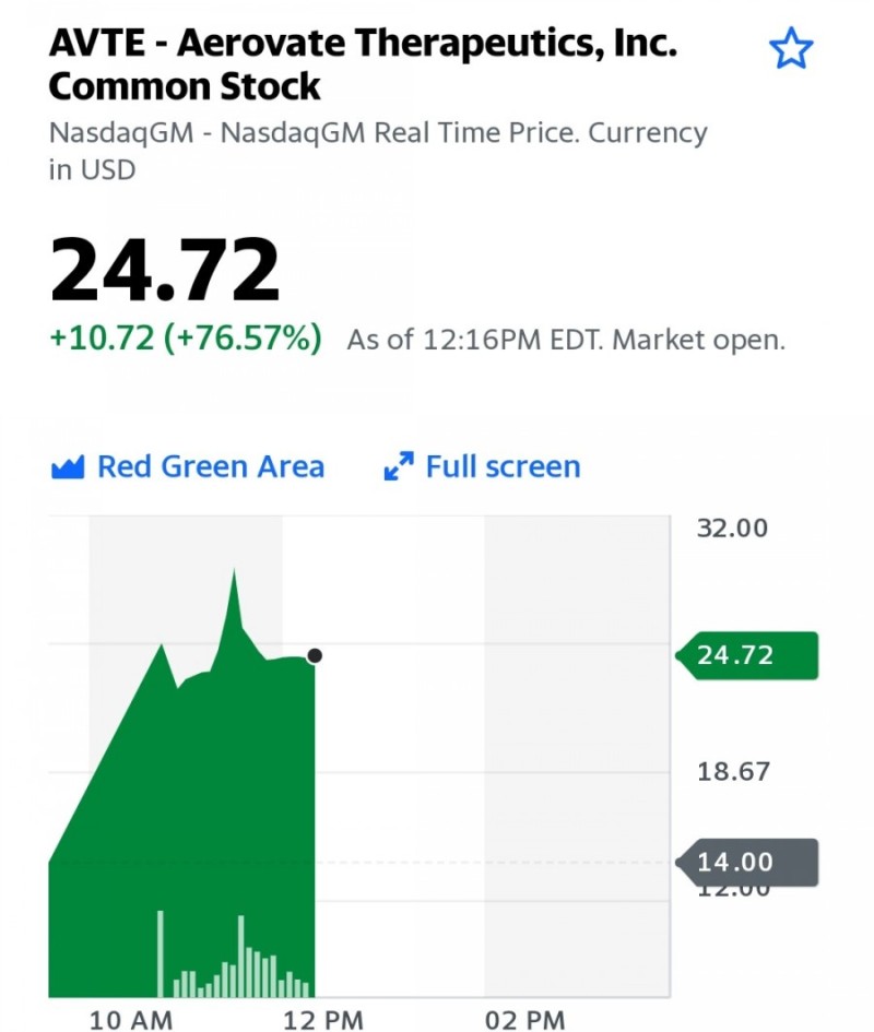 Aerovate Therapeutics, 대규모 초기 공모 가격 발표