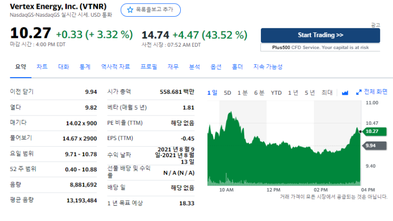 [미국 주식] Vertex Energy, Inc. (VTNR,버텍스 에너지) 주가가 급등한 이유는?