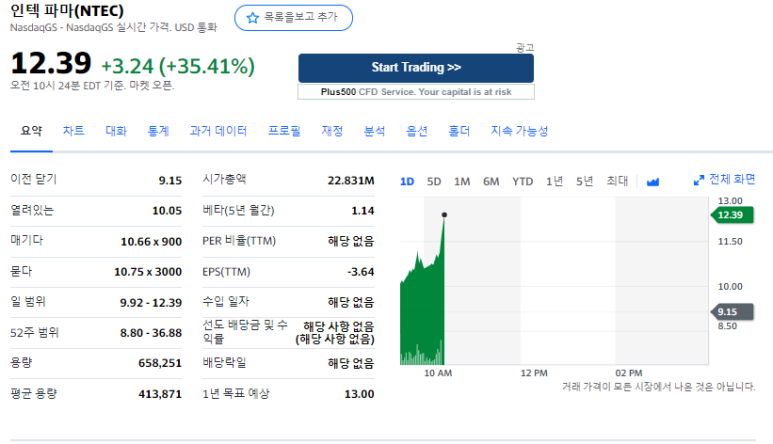 - 2021년 7월 27일 개장 시 Intec US는 Intec Israel의 기존 심볼 "NTEC"으로 Intec Israel 대신 Nasdaq Capital Market에서 거래를 시작합니다.