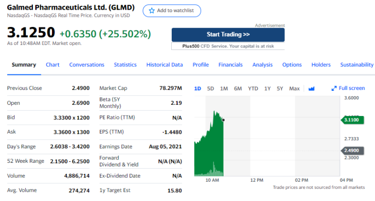 텔아비브, 이스라엘 , 2021년 8월 2일 /PRNewswire/ -- 간, 대사 및 염증성 질환에 대한 임상 단계의 생물제약 회사인 Galmed Pharmaceuticals Ltd.(Nasdaq: GLMD)("Galmed" 또는 "회사")가 오늘 발표되었습니다. FDA는 아람콜 메글루민과 관련하여 계획된 제한된 약리학 연구 이외의 추가 비임상 및 임상 연구를 수행할 필요 없이 3상 ARMOR 연구에서 아람콜 메글루민(Aramchol 유리산 대신)을 사용하려는 계획에 동의했습니다.