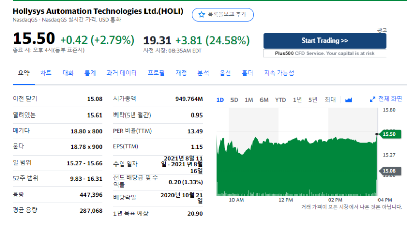 베이징 , 2021년 8월 2일 /PRNewswire/ -- 중국 의 자동화 및 제어 기술 및 애플리케이션의 선두 제공업체인 HollySys Automation Technologies Ltd.(NASDAQ: HOLI)("HollySys" 또는 "회사")는 오늘 오늘 발표했습니다. 회사의 이사회(이하 "이사회")는 Ascendent Capital Partners가 관리하는 회사인 Superior Emerald (Cayman) Limited와 은퇴한 회사 설립자인 Mr. Changli Wang의 구속력 없는 제안을 평가하는 중입니다. 2013년 회사(총칭하여 "에메랄드 컨소시엄")로부터 2021년 7월 20일 에 회사의 모든 발행 보통주를 US$23.00에 인수했습니다.주당 현금("에메랄드 제안"). 이는 CPE Funds Management Limited, Mr. Shao Baiqing 및 Ace Lead Profits Limited(총칭하여 "CPE 컨소시엄")가 주당 $17.10의 현금으로 회사의 모든 발행 보통주를 인수하겠다는 제안에 따른 것입니다("CPE 제안 ") CPE 컨소시엄이 공개적으로 공개했으며 회사가 이전에 응답했습니다.