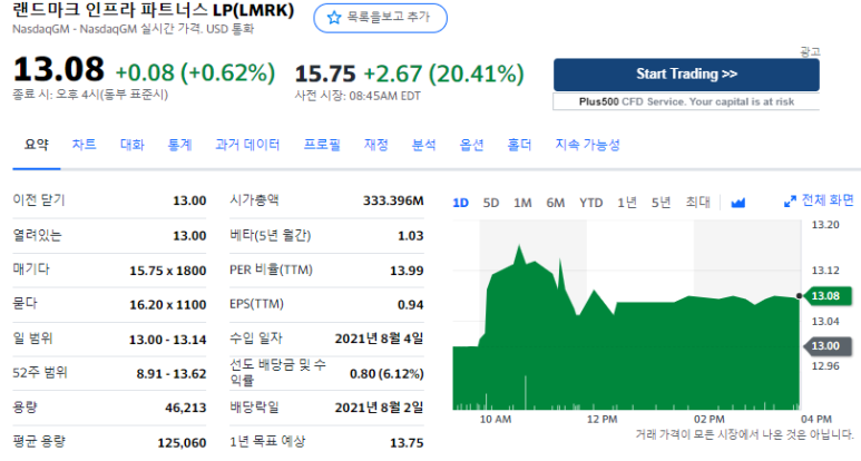멜로디 인베스트먼트 어드바이저스, 랜드마크 인프라스트럭처 파트너스 자산 전체를 현금 공통 단위당 16.25달러에 구매 제안 발표