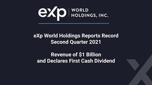 eXp World Holdings, 2021년 2분기 매출 10억 달러 기록 및 첫 현금 배당 발표