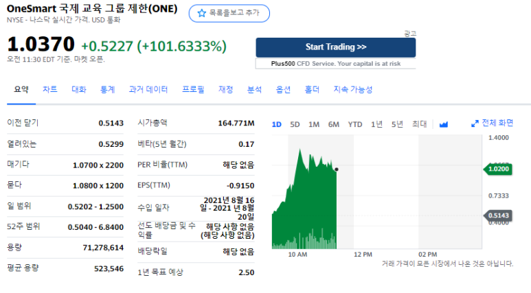 OneSmart, ADS 거래 가격에 관한 NYSE 비준수 서신 접수 발표