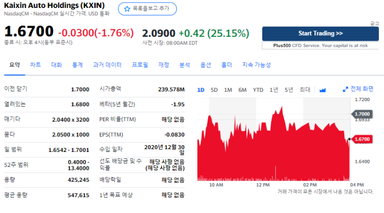 Kaixin Auto Holdings는 중국의 프리미엄 중고차 및 신차 판매의 주요 딜러 네트워크 중 하나입니다. 중국 중고차 시장의 급속한 성장과 강력한 온라인 및 오프라인 입지를 모두 제공하는 자체 하이브리드 비즈니스 모델을 활용하여 Kaixin은 기술 기반 금융 플랫폼에서 자체 딜러와 제휴 딜러를 결합하는 전국 딜러 네트워크로 변모했습니다. 부가 가치 서비스로.