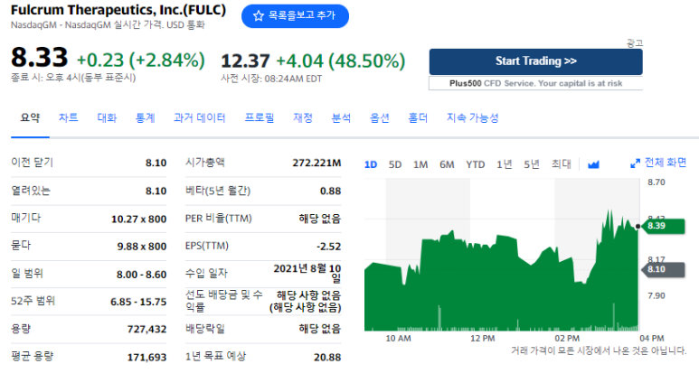[미국 주식] Fulcrum Therapeutics, Inc.(FULC) 주가가 급등한 이유는?
