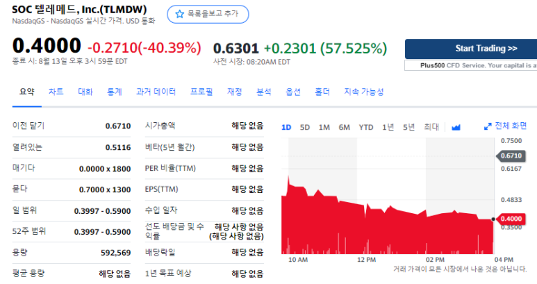 [미국 주식] SOC Telemed, Inc. (TLMDW) 주가가 급등한 이유는?
