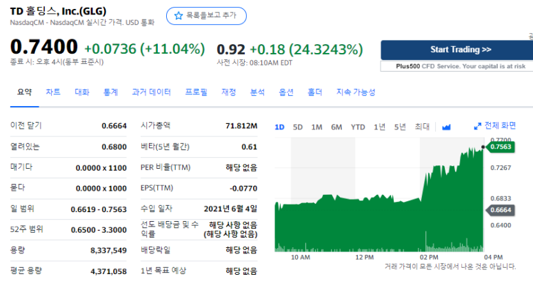 [미국 주식] TD Holdings, Inc. (GLG) 주가가 급등한 이유는?