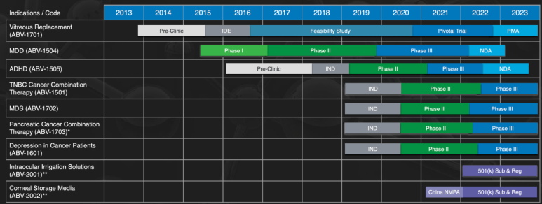ABVC는 현재 6개의 약물과 3개의 의료 기기를 개발 중입니다.