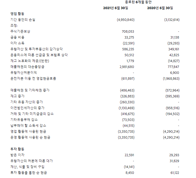 GAAP 순 손실과 2021 년 상반기 연도의 주당 희석 손실이었다 $ 5.0 백만 과 $ 1.21 순손실 및 희석 주당 손실에 비해 각각을, $ 3.1 백만 과 $ 1.21 2020 년 같은 기간 각각. 운전자본은 2021년 6월 30일 현재 1,330만 달러 입니다. 현금 및 제한 현금은 2021년 6월 30일 현재 총 1,410만 달러 입니다.