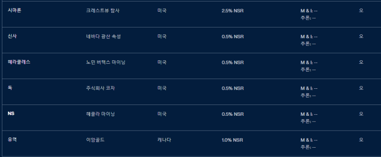 단기 현금 흐름 : 각 사업자가 공개한 계획에 따라 현재 개발 중인 7개의 광산으로 생산 로열티가 두 배 이상으로 예상됩니다.