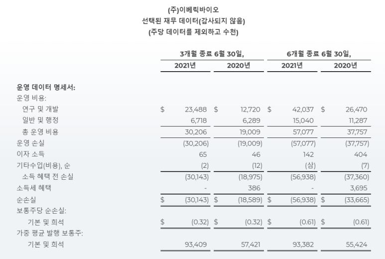 순손실 : 회사는 마감된 분기의 순손실을 보고했습니다.2021년 6월 30일 NS 3010만 달러, 또는 ($0.32) 순손실 대비 희석주당 1,860만 달러, 또는 $(0.32) 2020년 같은 기간 동안 희석주당. 종료 6개월 동안 2021년 6월 30일, 회사는 의 순손실을 보고했습니다. 5,690만 달러 또는 ($0.61) 순손실 대비 희석주당 3,370만 달러 또는 ($0.61) 2020년 같은 기간 동안.