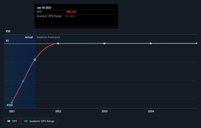 2명의 American Electrical 분석가에 따르면 ADS-TEC Energy는 손익분기점에 가까워지고 있습니다. 그들은 회사가 2022년에 최종 손실을 입을 것으로 예상하고 2023년에 560만 유로의 양의 이익을 창출할 것으로 예상합니다. 따라서 회사는 지금부터 1년 조금 넘게 손익분기점을 달성할 것으로 예상됩니다. 이 날짜에 손익분기점을 달성하려면 회사가 매년 어느 정도 성장해야 합니까? 최적의 선을 사용하여 평균 연간 성장률을 78%로 계산했는데 이는 분석가의 높은 신뢰도를 나타냅니다. 이 비율이 너무 공격적인 것으로 판명되면 회사는 분석가가 예측한 것보다 훨씬 늦게 수익을 올릴 수 있습니다.