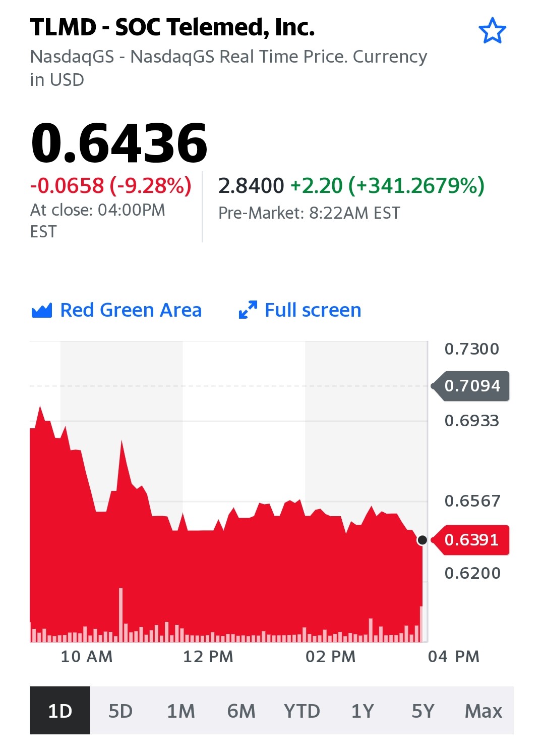 - SOC Telemed 주주 는 주당 $3.00 현금 지급