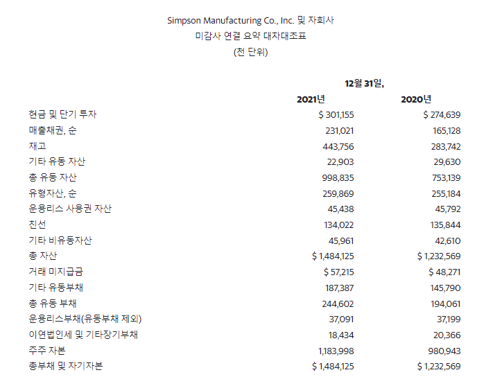 SIMSON MANUFACTURING CO., INC., 2021년 4분기 및 연간 재무 결과 발표