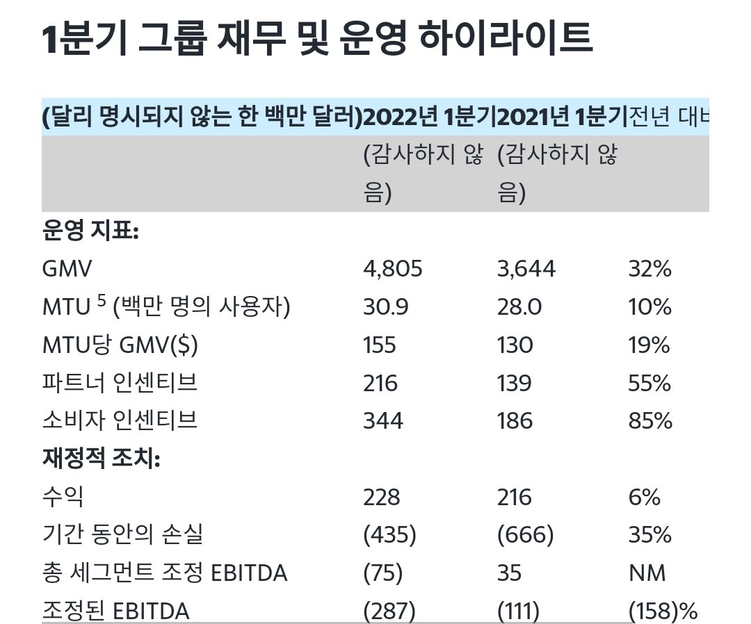 싱가포르, 2022년 5월 19일 --( BUSINESS WIRE ) -- Grab Holdings Limited(NASDAQ: GRAB)는 오늘 2022년 3월 31일로 종료되는 분기의 재무 결과를 발표했습니다.