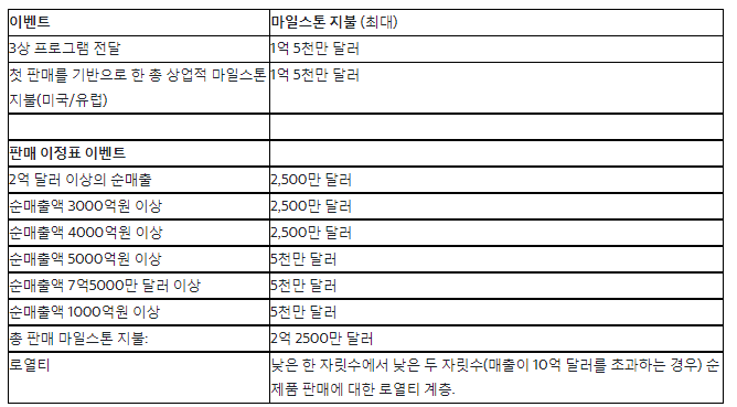라이선스 계약 조건에 따라 Spero는 약품에 대한 권리를 확보하기 위해 GSK에 대해 6600만 달러의 선지급금을 받게 됩니다. 나머지 잠재적 지불은 마일스톤을 기반으로 하며 다음과 같습니다.