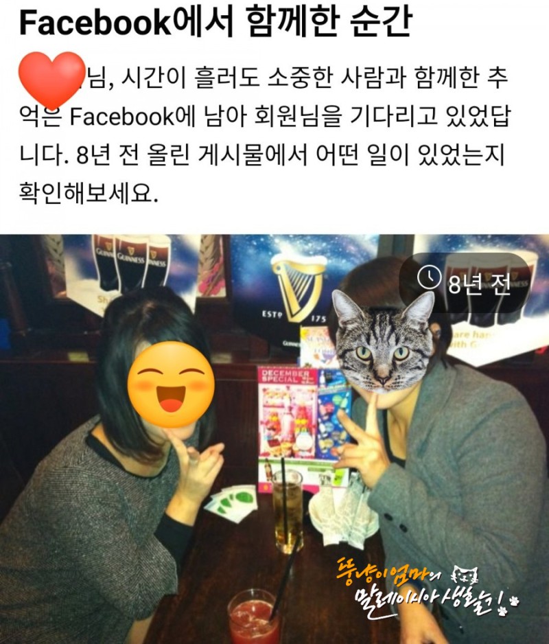 페북에서 8년전이라며 사진이 떳다. 일본대학시절 친구랑 펍에서 찍은 사진이다.