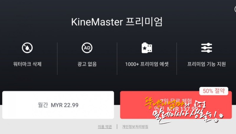 이번에 키네마스터가 또 가격인상을 했다. 이제 22. 99링깃 ㄷㄷㄷ 사악하다