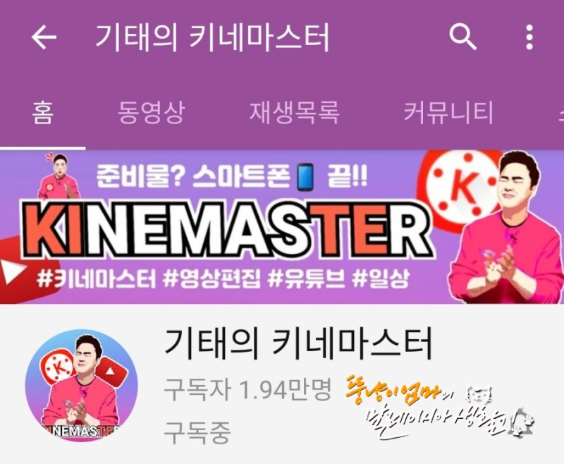 기태의 키네마스터라는 유튜브 채널로 주로 키네마스터 사용법을 알려준다. 아주 디테일하게 알려주셔서 초보자에게는 너무나 감사한 영상!