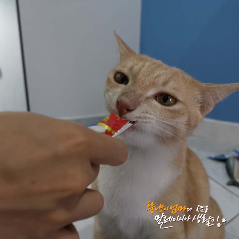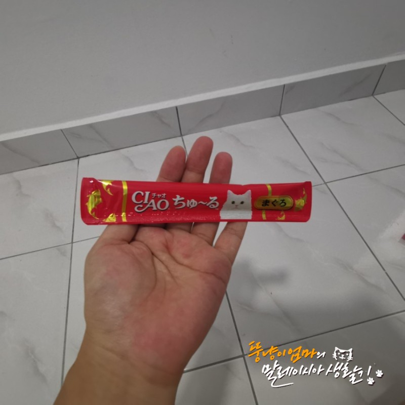 당장 츄르부터 줘 볼까요? 우선 집사인 제가 한입 먹어보겠습니다 ㅎㅎㅎ