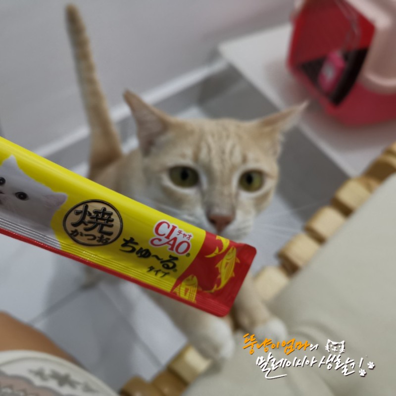 오늘의 캣글라스 치즈한테 급여하고,설날이니까 세뱃돈말고 츄르 줄게