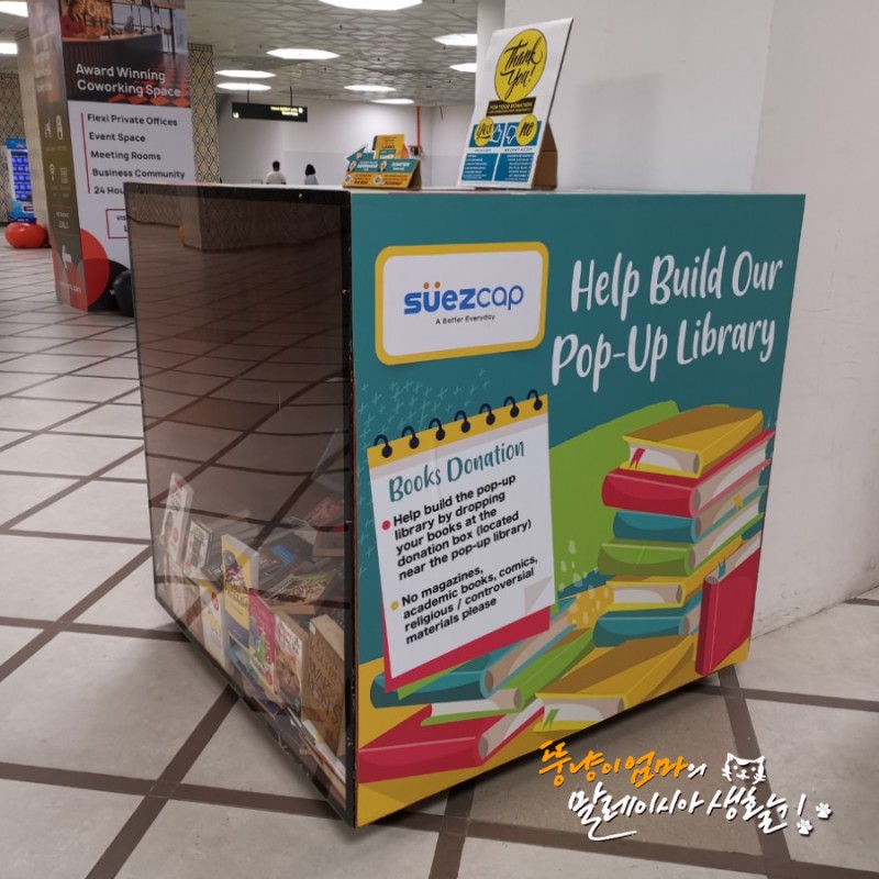 Bangsar south에서 약속이 있는 동료를 따라 왔다. 팝업 도서관을 만들기 위해 기부를 받고 있는 듯.와중 고양이 책 귀엽 ㅋ