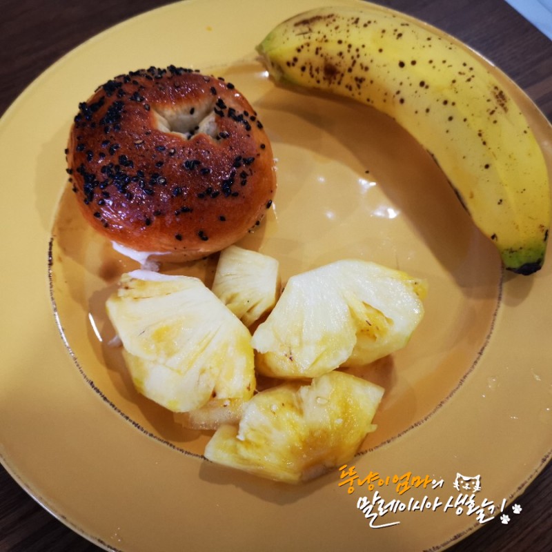 올만에 푸짐하게 먹은 아침식사. 직접내린 아메리카노, 요거트, 파인애플, 바나나, 베이글. 아이고 많이도 먹었네
