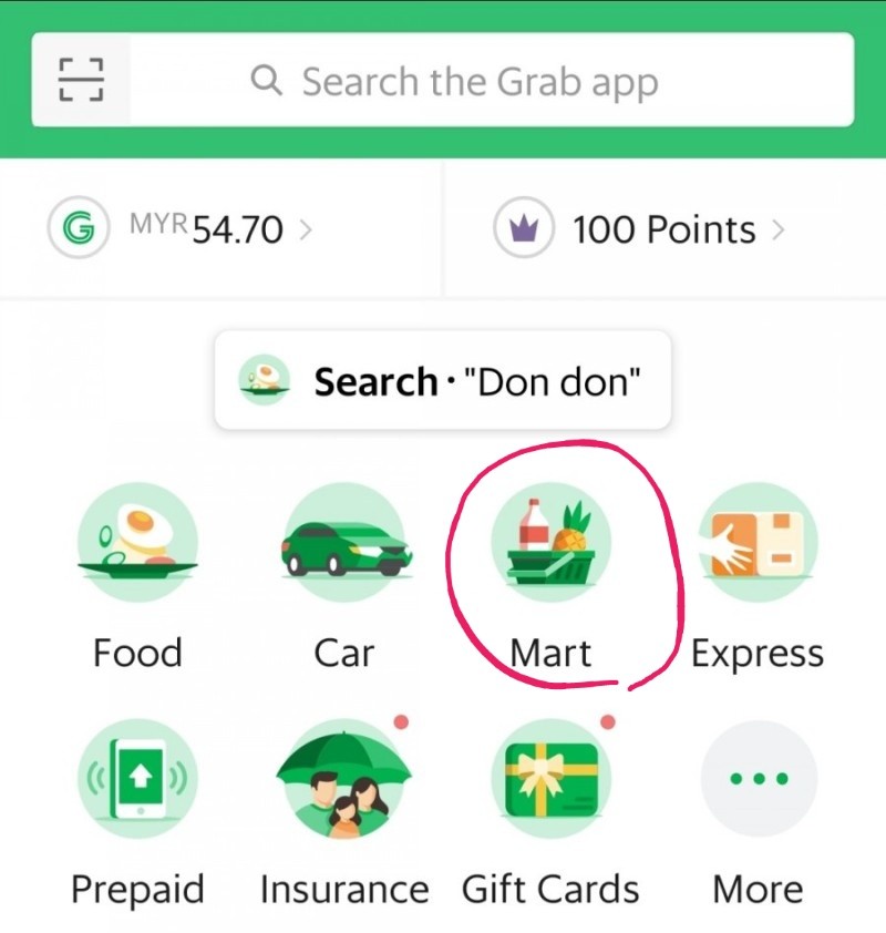 [Mart]는 집근처에 있는 가게에서 물건을 구매하고 배달 받을 수 있는 기능이며, 그랩 앱 내에서 상품목록이 있어 주문을 하는 방식이다. [Mart] 내에 입점해 있는 가게들은 Grab에게 시스템 이용료를 지불하고 그들의 플랫폼을 이용해 판매하는 방식.
