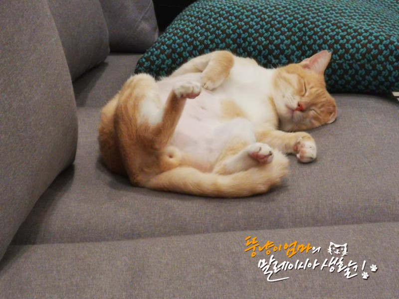 안 돌아가는 머리를 싸매고 공부하다 쇼파를 봤는데, 아주 평화롭게 자고있는 치즈, 열심히 일해서 우리 치즈 맛있는거 많이 사줘야지