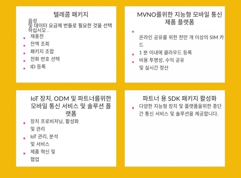우리는 이동 통신 산업의 비즈니스를위한 결제 서비스 및 솔루션을 제공, 통합, 가능하게합니다.