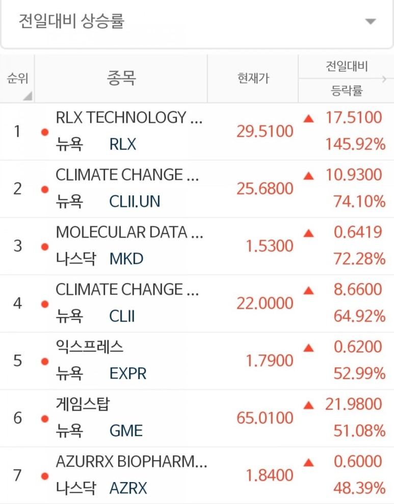 안녕하세요. 옆집 세라입니다. 어제 전일대비 상승율 3위로 마감한 기업은 몰레큘러 데이터 ADR 가 되겠습니다.