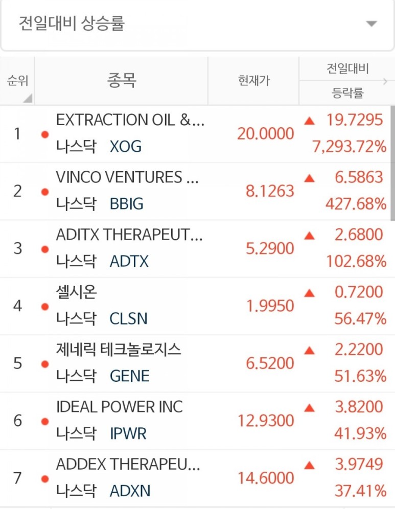 안녕하세요. 옆집 세라입니다. 오늘의 전일대비 상승율 두번째 1위는 Extraction Oil & Gas, Inc가 되겠습니다.