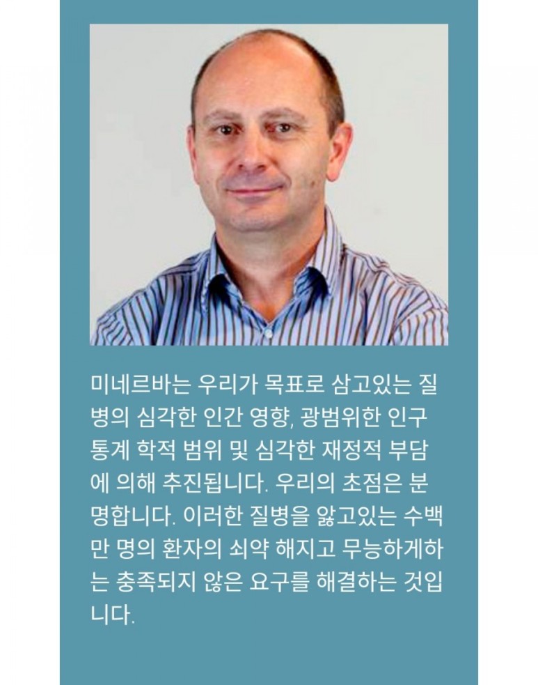 이 진화하는 환경에서 미네르바의 역할은 무엇입니까? 우리의 임무는 충족되지 않은 광범위한 의학적 요구가있는 CNS 질환에 대한 새로운 치료법을 개발하는 데 초점을 맞추고 있습니다. 이를 위해 우리 팀 은 임상 시설과 전임상 및 임상 연구 프로젝트에서 30 년 이상 일하면서 축적 한 지식과 전문성을 적용하고 있습니다. 저희 프로그램은 현재 치료와 관련된 제한적이고 단기적인 혜택과 종종 쇠약 해지는 부작용을 해결하도록 설계되었습니다.