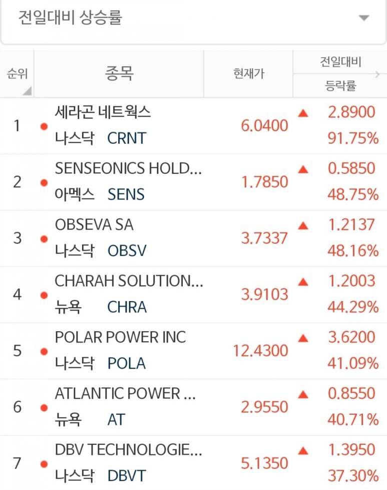 안녕하세요. 옆집 세라입니다. 오늘의 전일대비 2번째 1위는 Ceragon Networks Ltd 가 되겠습니다.
