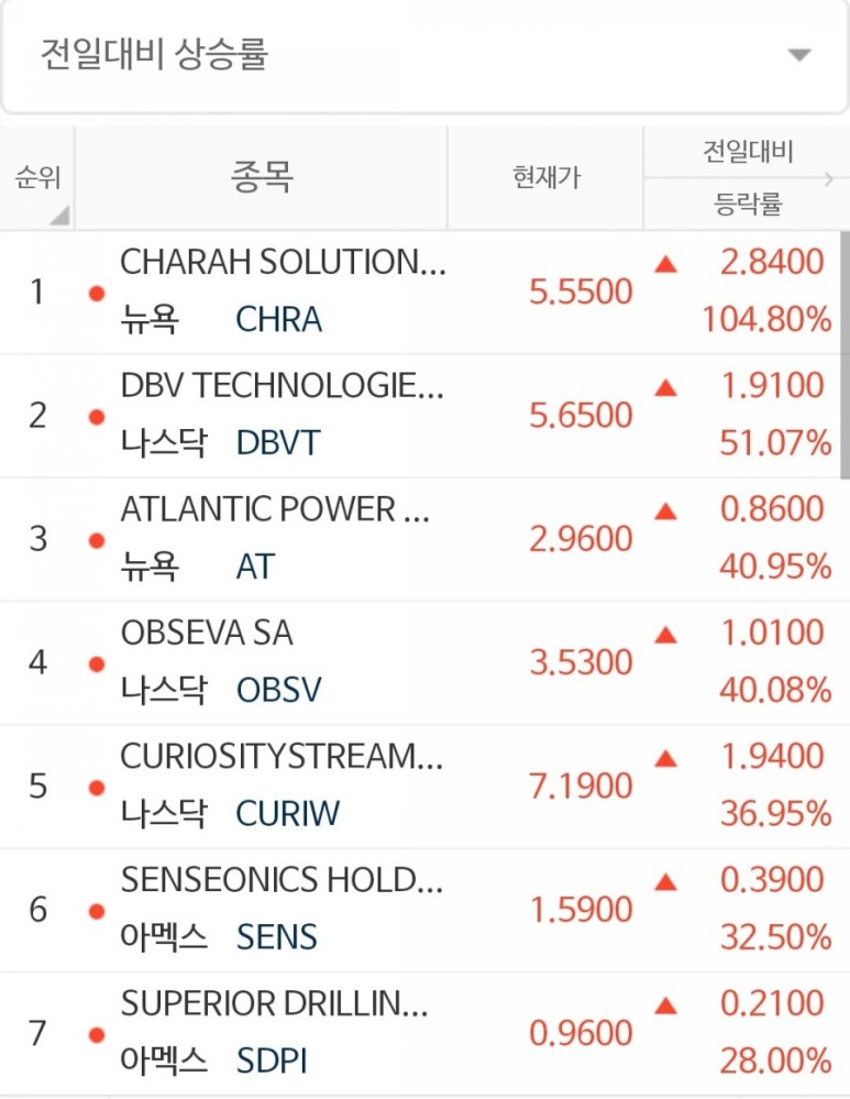 안녕하세요. 옆집 세라입니다. 오늘의 전일대비 상승율 1위는 Charah Solutions Inc 가 되겠습니다.
