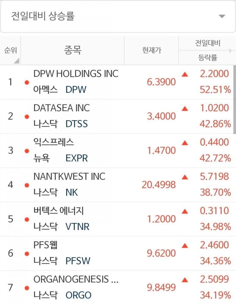 안녕하세요. 옆집 세라입니다. 오늘의 전일대비 상승율 5위는 Vertex Energy Inc가 되겠습니다.
