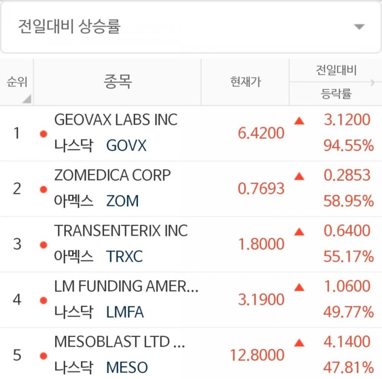 안녕하세요. 옆집 세라입니다. 오늘의 전일대비 상승율 2위는 Zomedica Corp 가 되겠습니다.