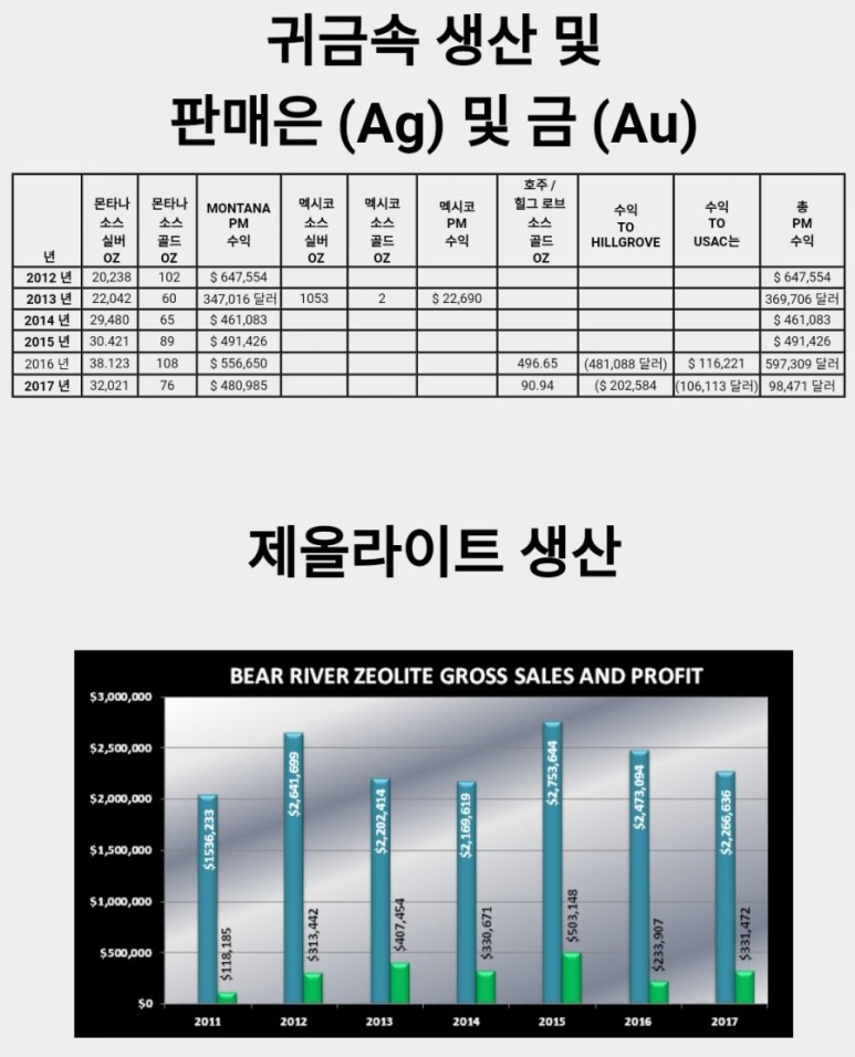 USAC 법인 사무실 및 공장, 몬태나 주 톰슨 폴스Madero Smelter, 멕시코 코아 우일 라Puerto Blanco Flotation / Gravity Mill, 멕시코과 나후 아토Antimony Oxide Ore Gravity Mill, Wadley, San Luis Potosi, 멕시코채광-Los Juarez Property, Queretaro, 멕시코광산-소야 탈 지구, 케 레타로, 멕시코광업-시에라 과달 루페, 자세 테 카스, 멕시코채광-과달 루파 나, 케 레타로, 멕시코Bear River Zeolite Pit, 프레스턴, 아이다 호Bear River Zeolite Plant, Preston, 아이다 호USAC 법인 사무실 및 공장, 몬태나 주 톰슨 폴스