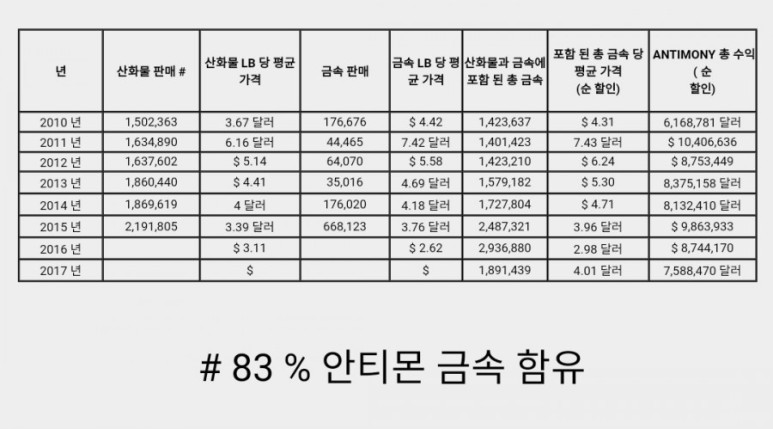 우리는 안티몬 제품의 국내 주요 생산자입니다.