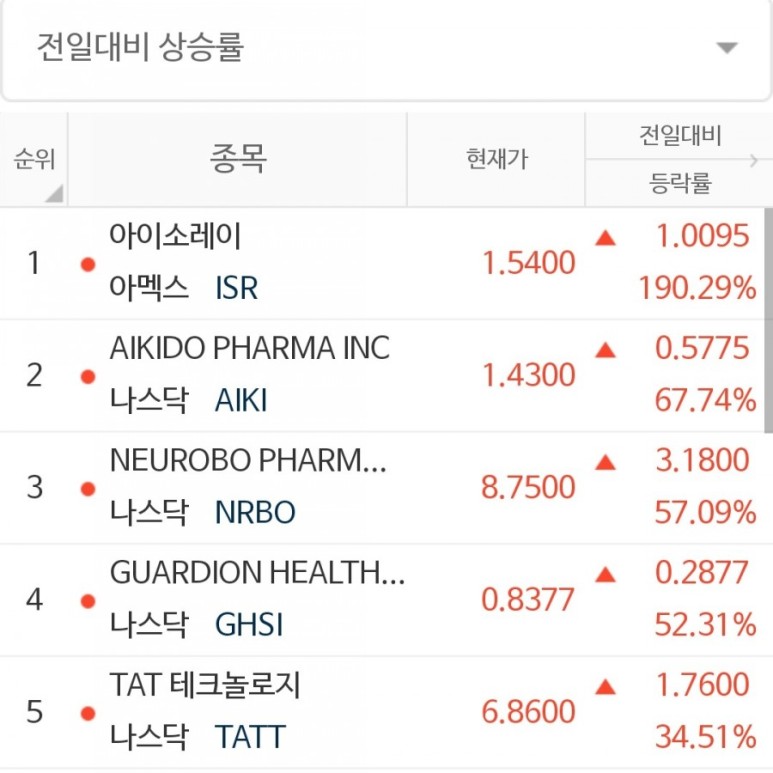 안녕하세요. 옆집 세라입니다. 오늘의 전일대비 상승율 1위는 IsoRay, Inc가 되겠습니다.