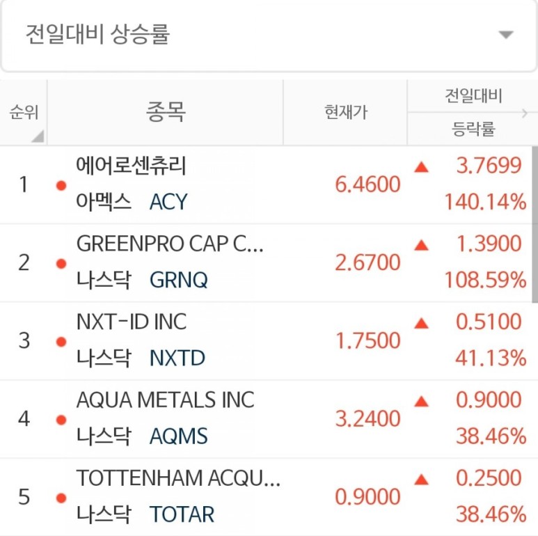 안녕하세요. 옆집 세라입니다. 오늘의 전일대비 상승율 1위는 AeroCentury Corp.가 되겠습니다.